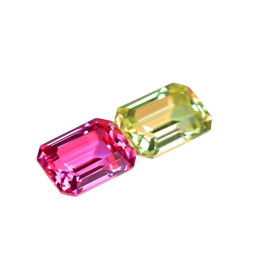 Lab Grown 2pc bundle Pink Sapphire & Yellow Sapphire Octogone Emerald cut Loose Gemstone corindon flame fusion 3x5mm to 20x30mm