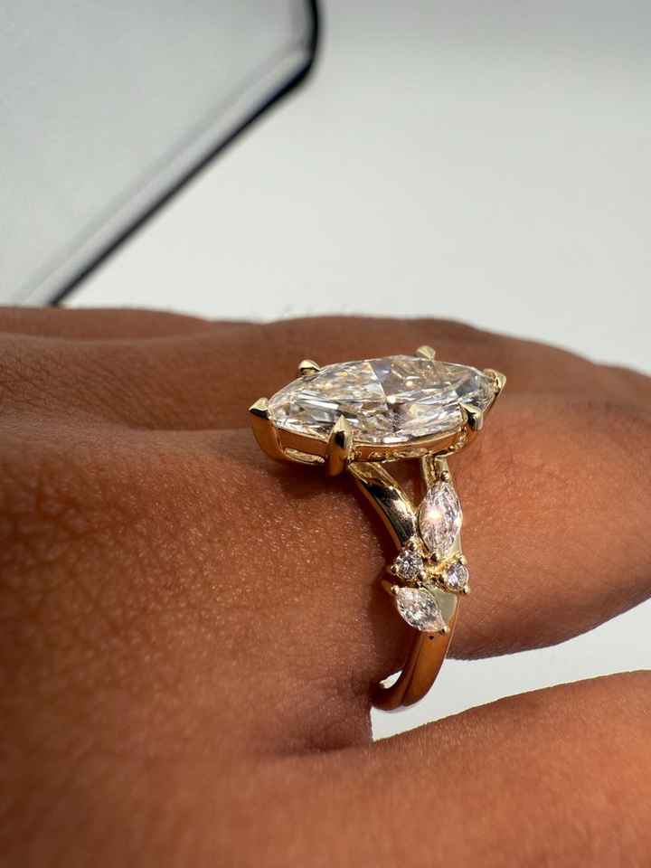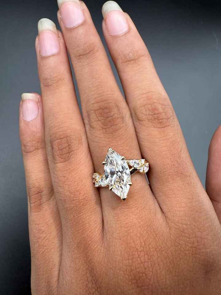 Bague de promesse en diamant taille marquise de 5,01 carats cultivé en laboratoire pour femme, en or massif 14 carats, cadeau de mariage ou de fête pour petite amie