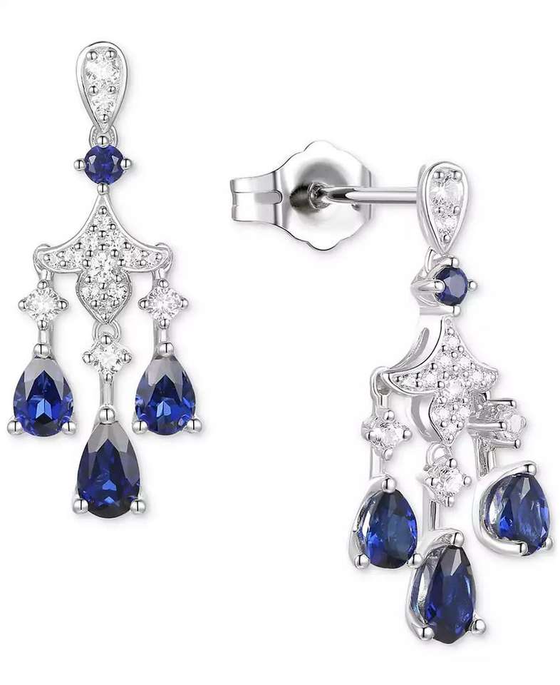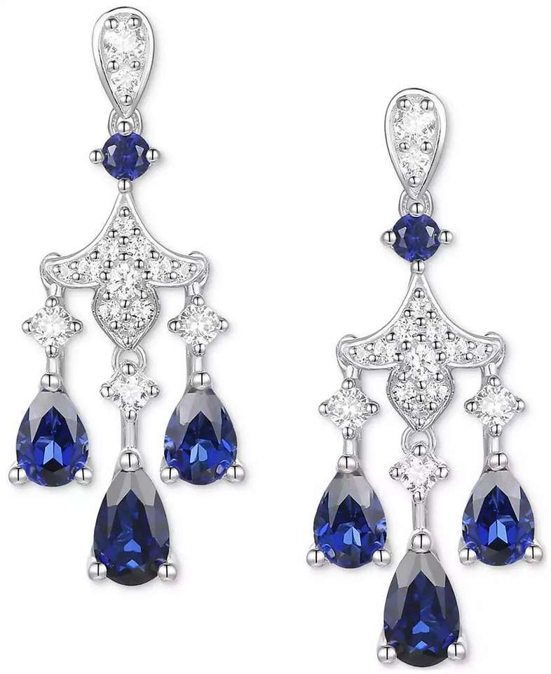 Saphir bleu de laboratoire (1-1/4 ct.) T. W.) & Saphir blanc cultivé en laboratoire (1/3 ct. T. W.) Boucles d'oreilles pendantes chandelier en argent sterling |