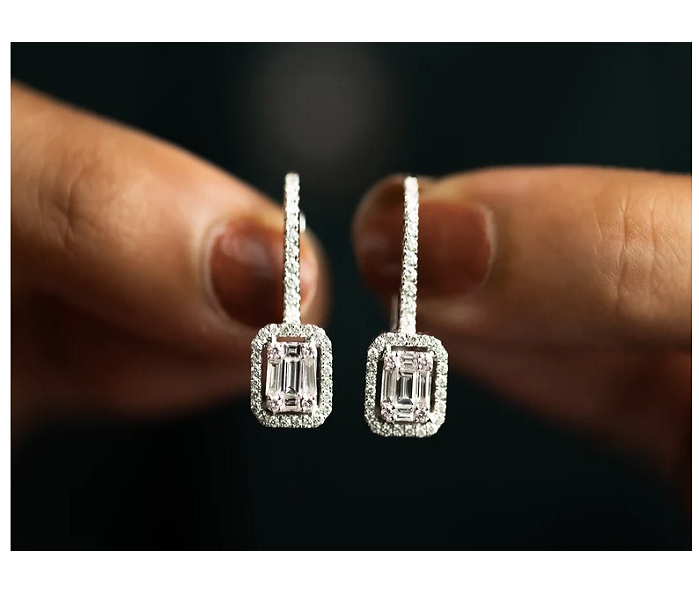 Boucles d'oreilles pendantes en diamant de laboratoire avec 1 carat de poids, or massif, élégantes, bijoux fins faits à la main, cadeau d'anniversaire pour femme