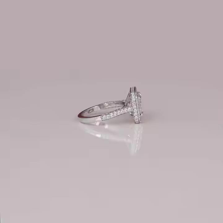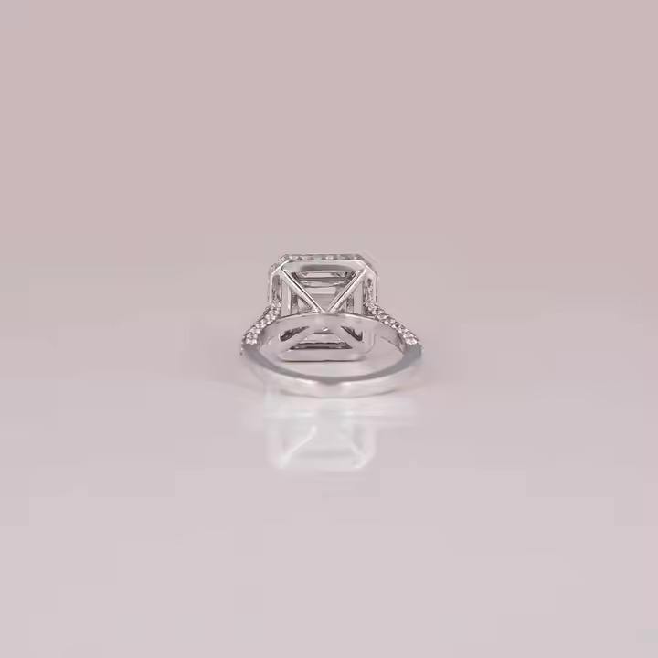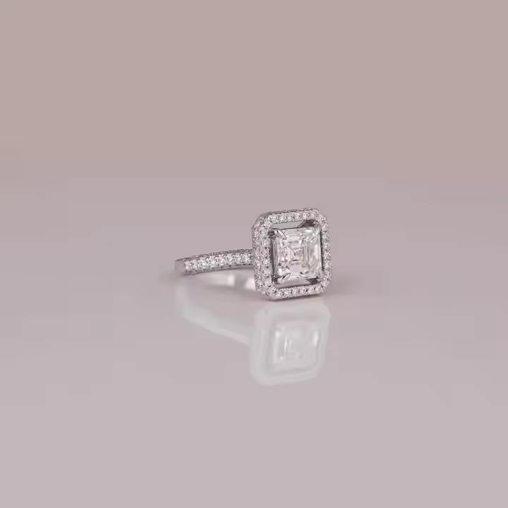 Bague de fiançailles en diamant de laboratoire taille Ascher en or massif 18 carats avec halo à deux côtés Bague personnalisée plaquée or certifiée