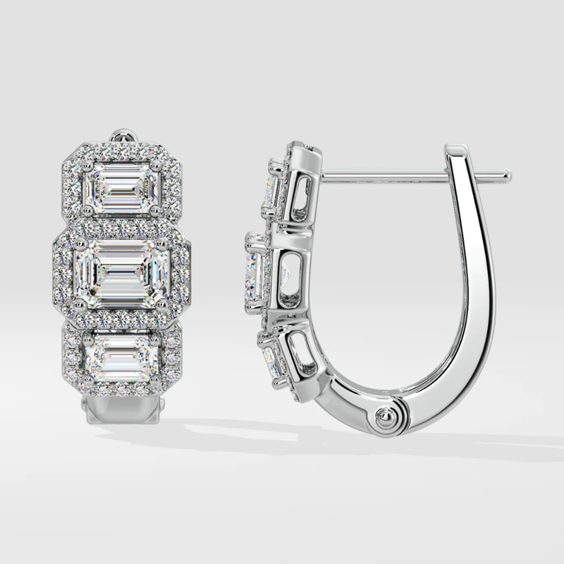 Boucles d'oreilles créoles en diamant de culture, or jaune 14 carats, taille émeraude, couleur E, clarté VVS, certifiées, tendance, pour fête, vente en gros, cadeau