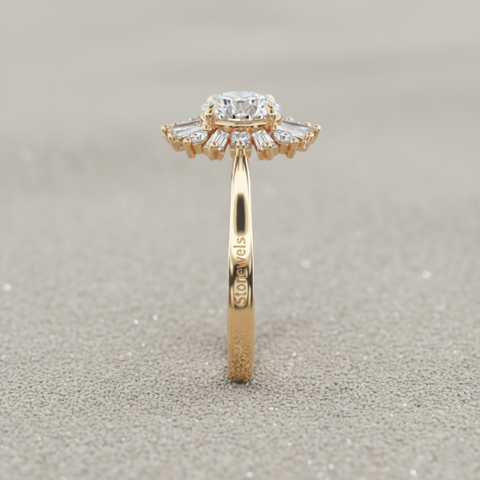 Model Number:Baguette Diamond Halo Ballerina Ring