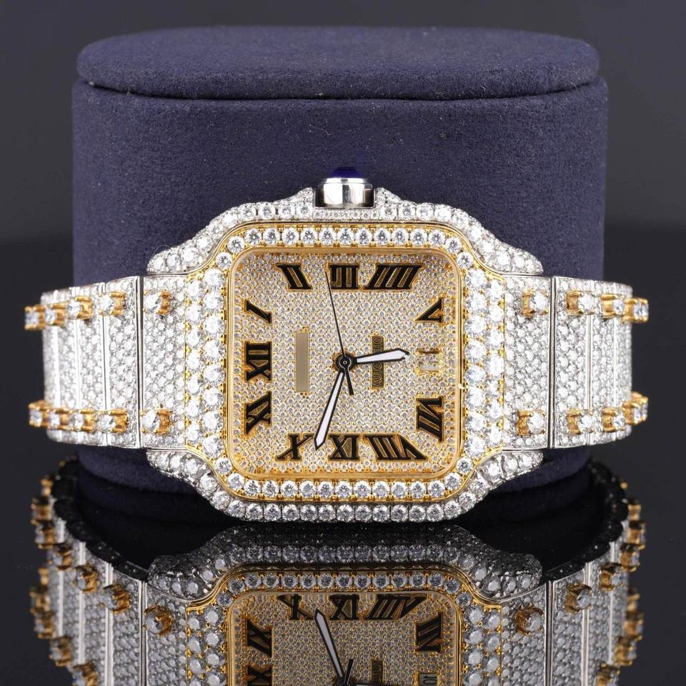 Montre automatique de luxe en acier inoxydable avec diamant cultivé en laboratoire, boîtier rond, cristal saphir, cadran analogique, 41 mm, fermoir pliant