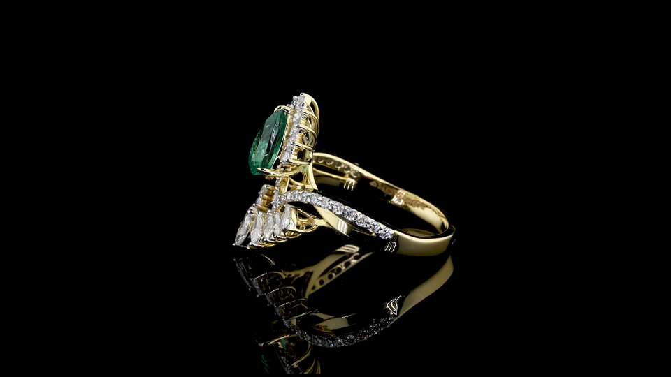 Bague en diamants de culture en forme de poire, or massif 14 carats plaqué rhodium, certifiée IGI | Cocktail de luxe pour mariage et soirée