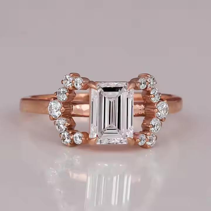 Bague de fiançailles et de mariage pour femme en plaqué or rose 18 carats avec diamants taille émeraude cultivés en laboratoire