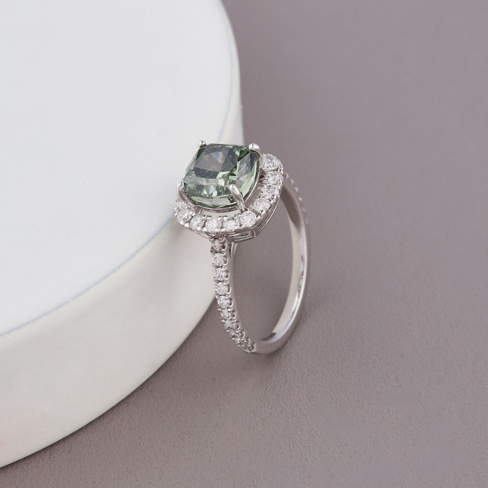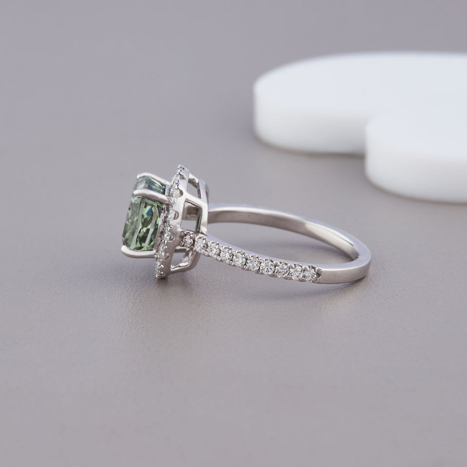 Keyword:IGI Certified Green Cushion Lab Diamond Halo Ring with Pavé Shank
