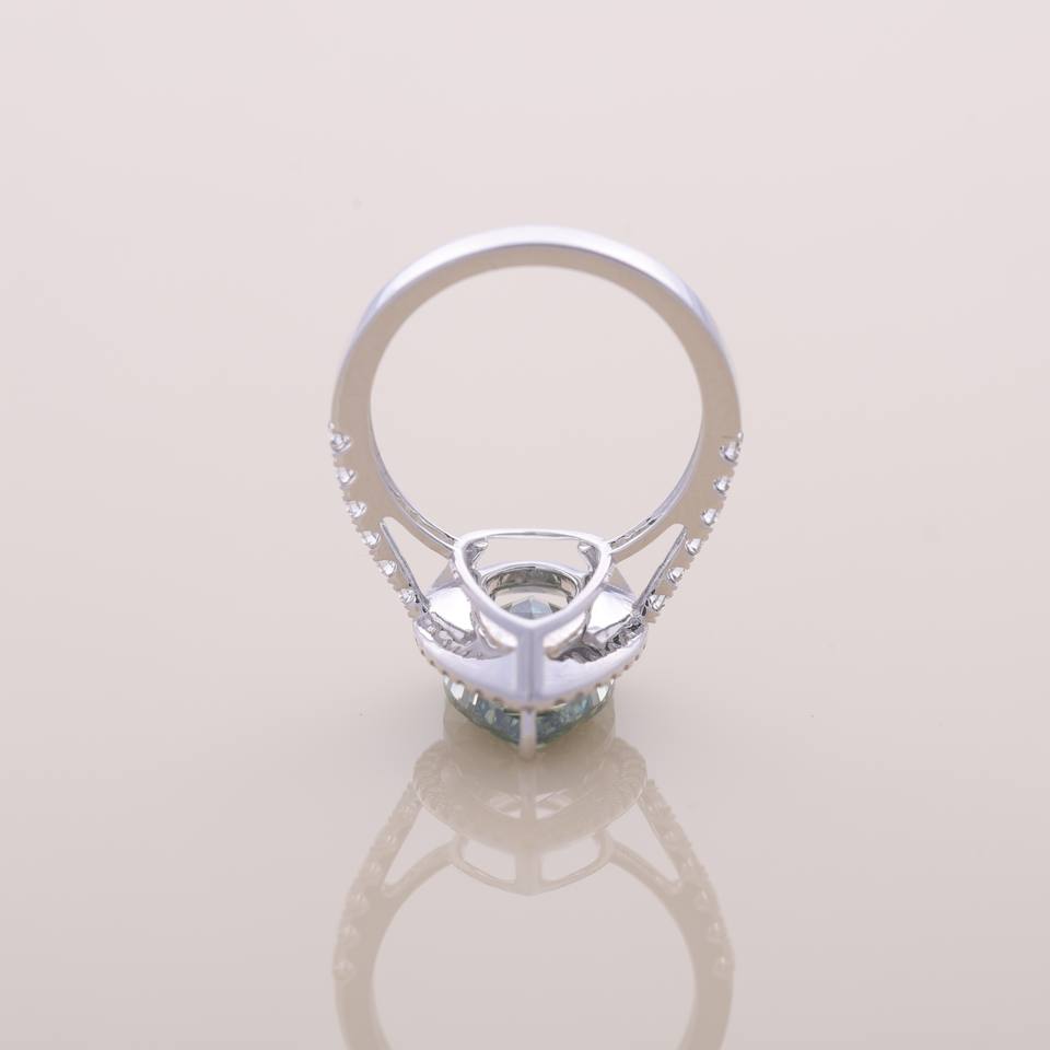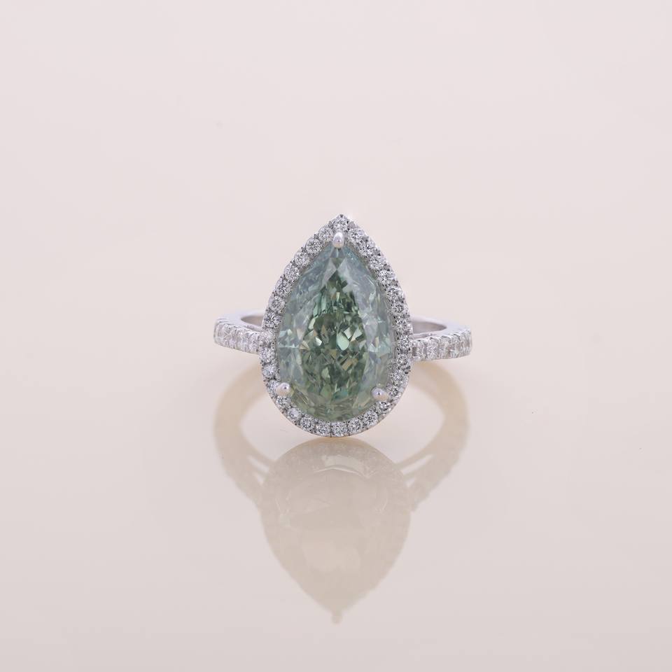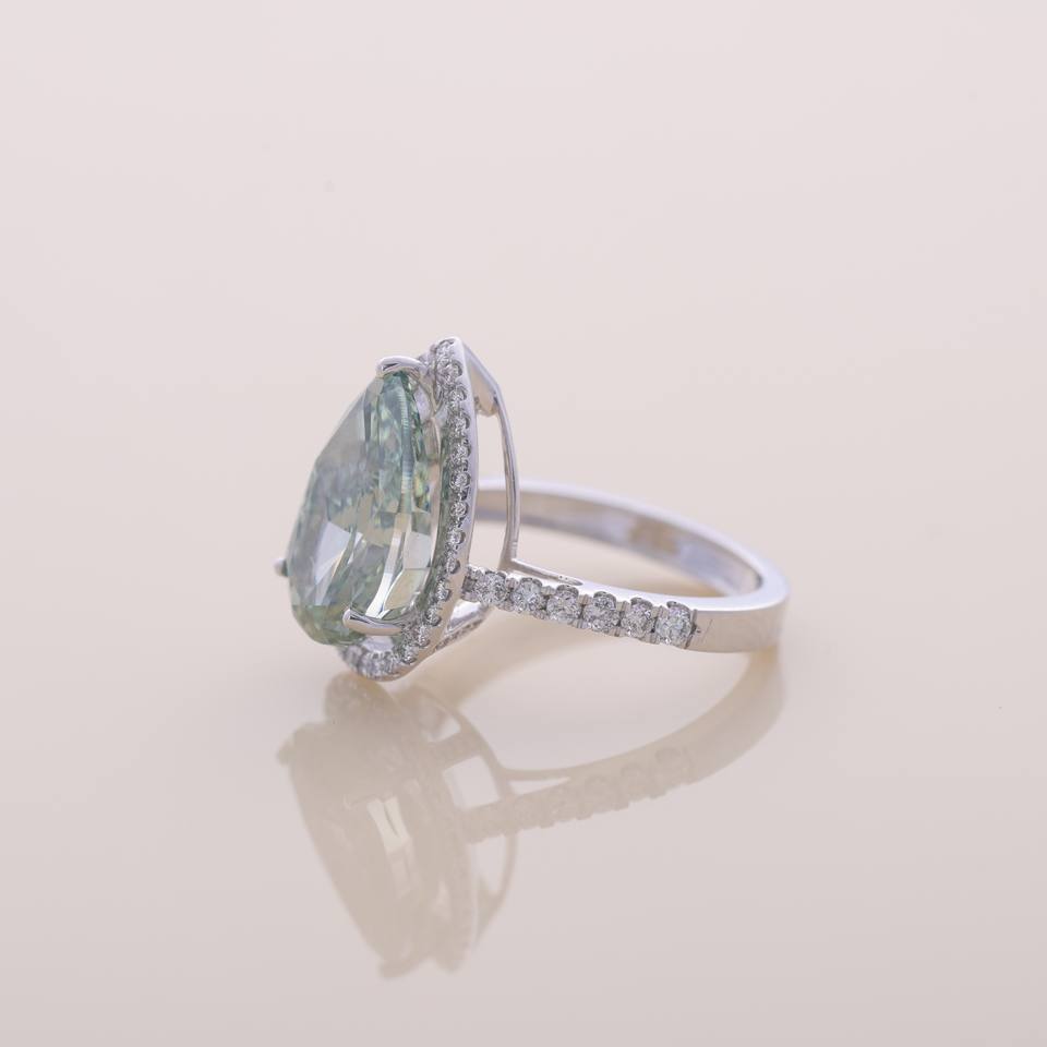 Bague halo en or blanc/rose/jaune 18 carats avec diamant vert taille poire cultivé en laboratoire et bande pavée | Bijoux fins personnalisés de luxe certifiés IGI