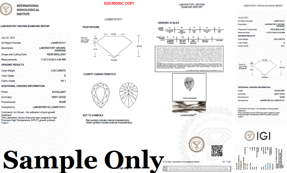Diamant de poire HPHT développé en laboratoire, 0.5 ct à 5.0 ct, taille de couleur différente, clarté VVS1 VS2 VS1 VS2 IGI, diamants polis certifiés