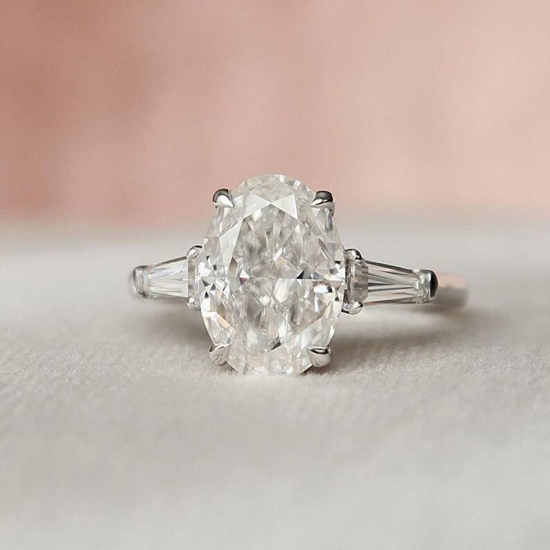 Bague de fiançailles trois pierres avec diamant taille ovale