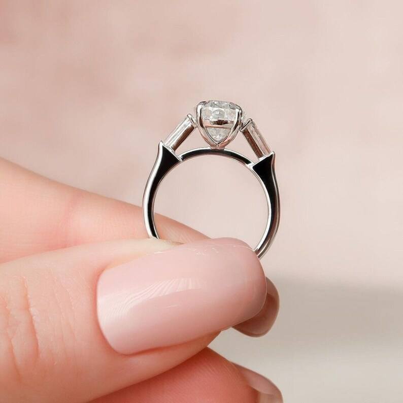 Design: Bague de fiançailles trois pierres avec diamant taille ovale
