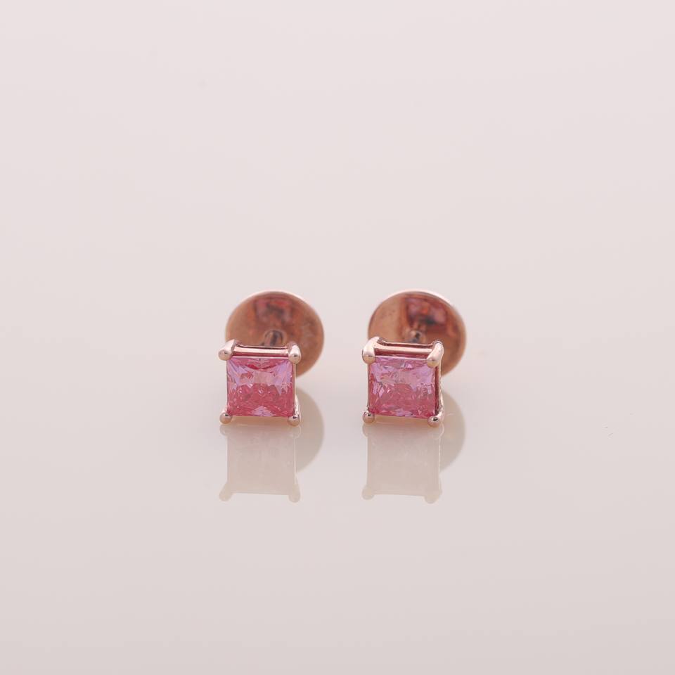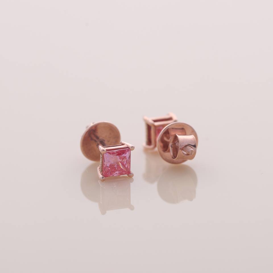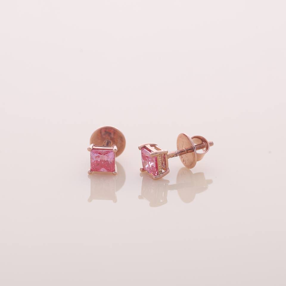 Boucles d'oreilles clous en or rose 18 carats jaune et blanc, serties de diamants roses de taille princesse cultivés en laboratoire, certifiées IGI, pour fiançailles, mariage et anniversaire