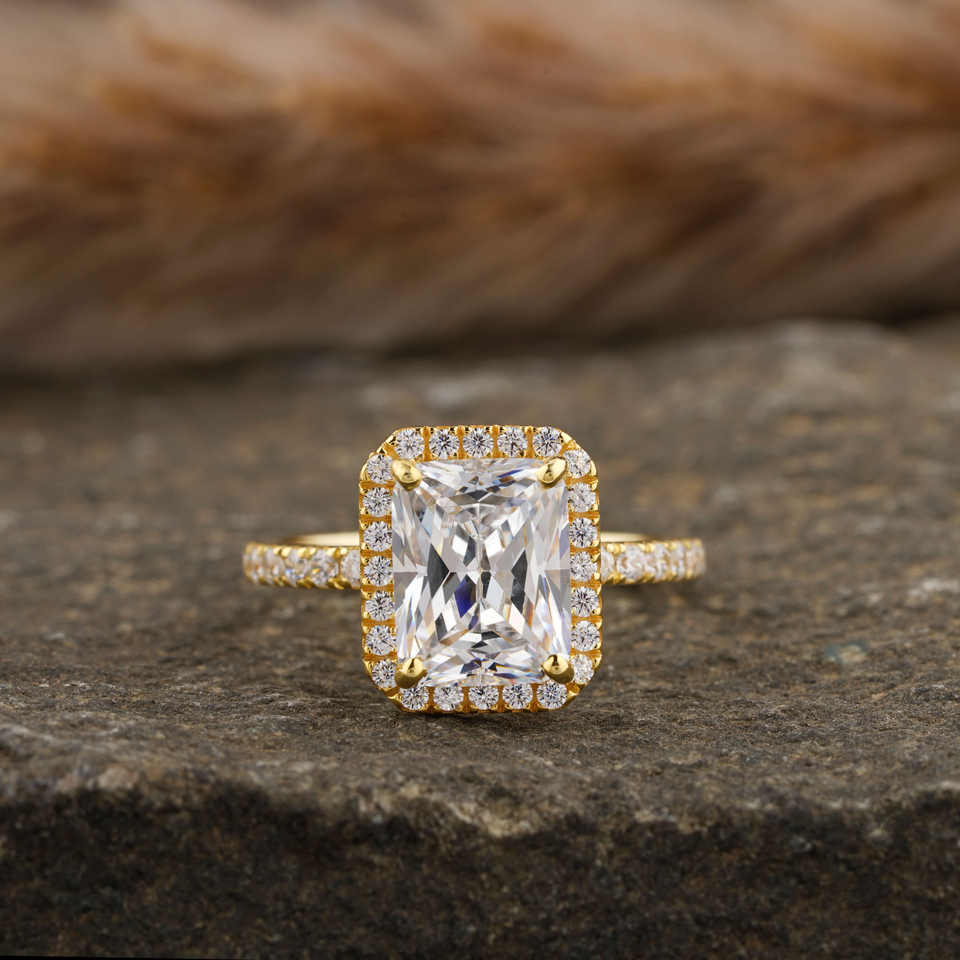 Bague de fiançailles en argent sterling avec certificat IGI en diamant radiant de laboratoire certifié Halo et pavé de luxe Cadeau pour femme
