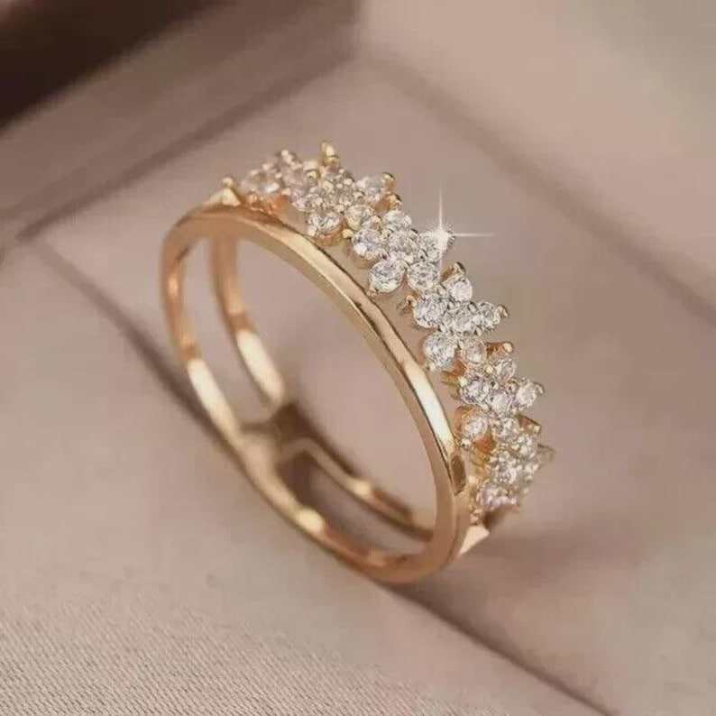 Bague florale double bande en or massif 14 carats avec diamant rond de laboratoire, cadeau raffiné pour femme, idéale pour un anniversaire de mariage ou une fête.