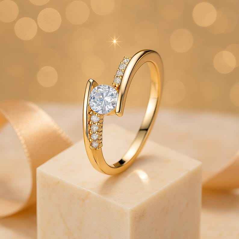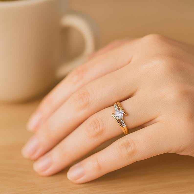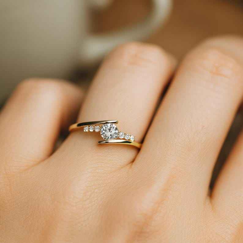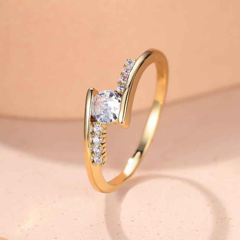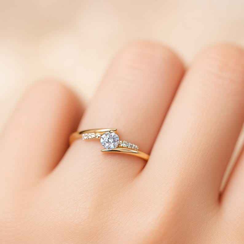 Bague de promesse fine et élégante en or massif 14 carats avec diamant rond de laboratoire pour femme, sertie à griffes ouvertes, pour mariage ou demande en mariage