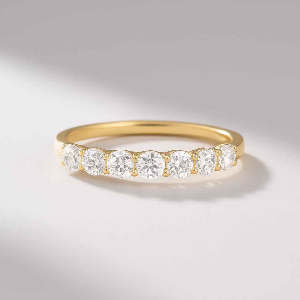 Lab Grown Round Cut Diamond Half Eternity Ring 14k For Womens Yellow Gold Wedding Band Promise Gift For Girlfriends