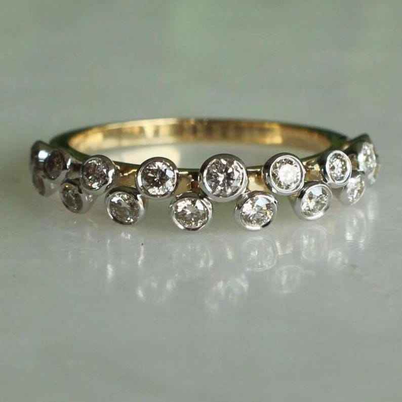 Bague demi-éternité en or massif 14 carats avec diamants ronds de laboratoire pour femme, cadeau d'anniversaire pour partenaires