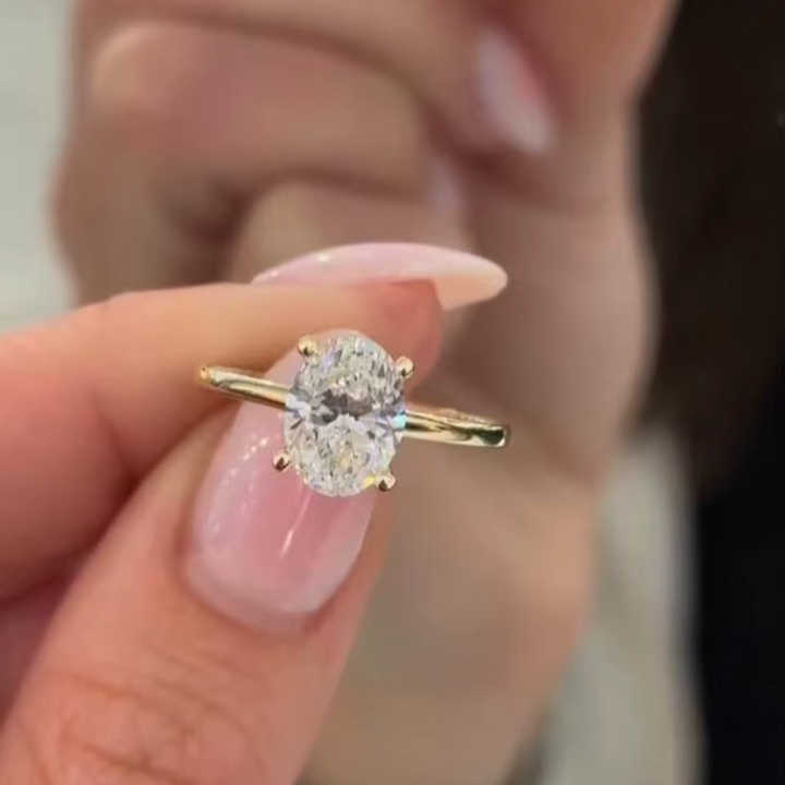Bague unisexe en or massif 14 carats avec diamant ovale de 2,02 carats de style vintage cultivé en laboratoire, solitaire moderne, cadeau pour toi et moi