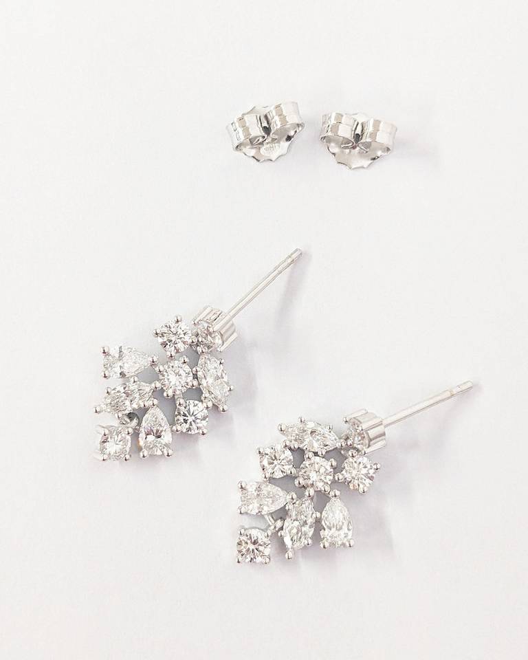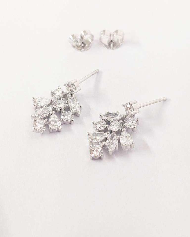 Boucles d'oreilles pendantes de mariage en grappe de Moissanite de laboratoire pour mariée Bijoux de mariage Boucles d'oreilles pour femme