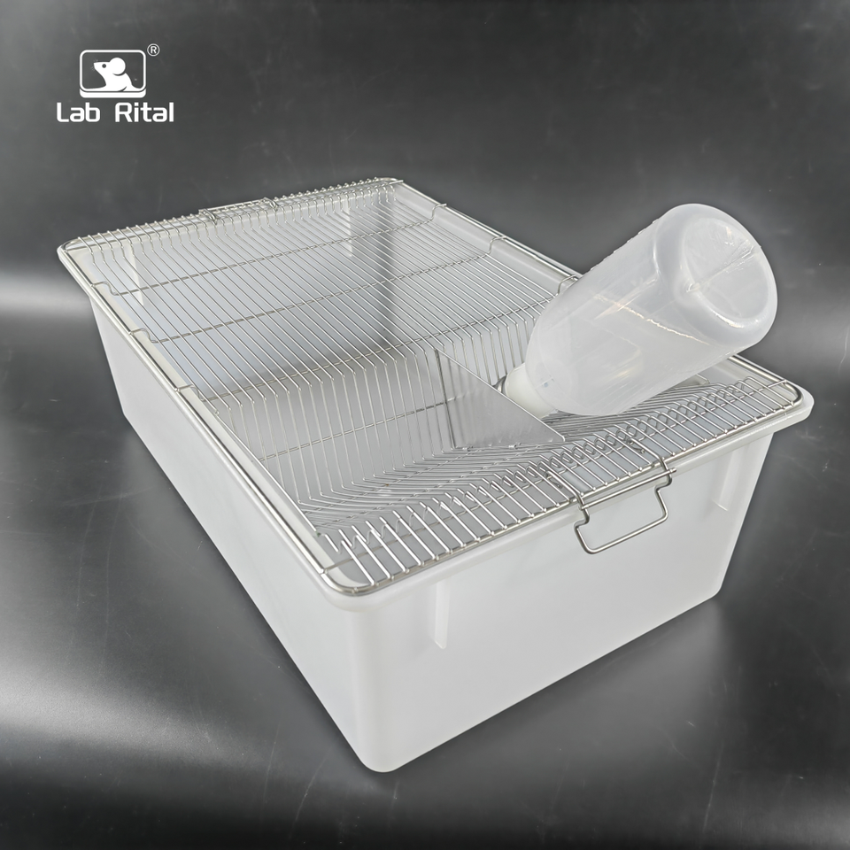 Cage pour souris/rats Rital R1-Cuve autoclavable en PP avec couvercle en acier inoxydable, cage pour animaux de laboratoire d'élevage