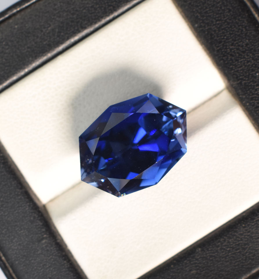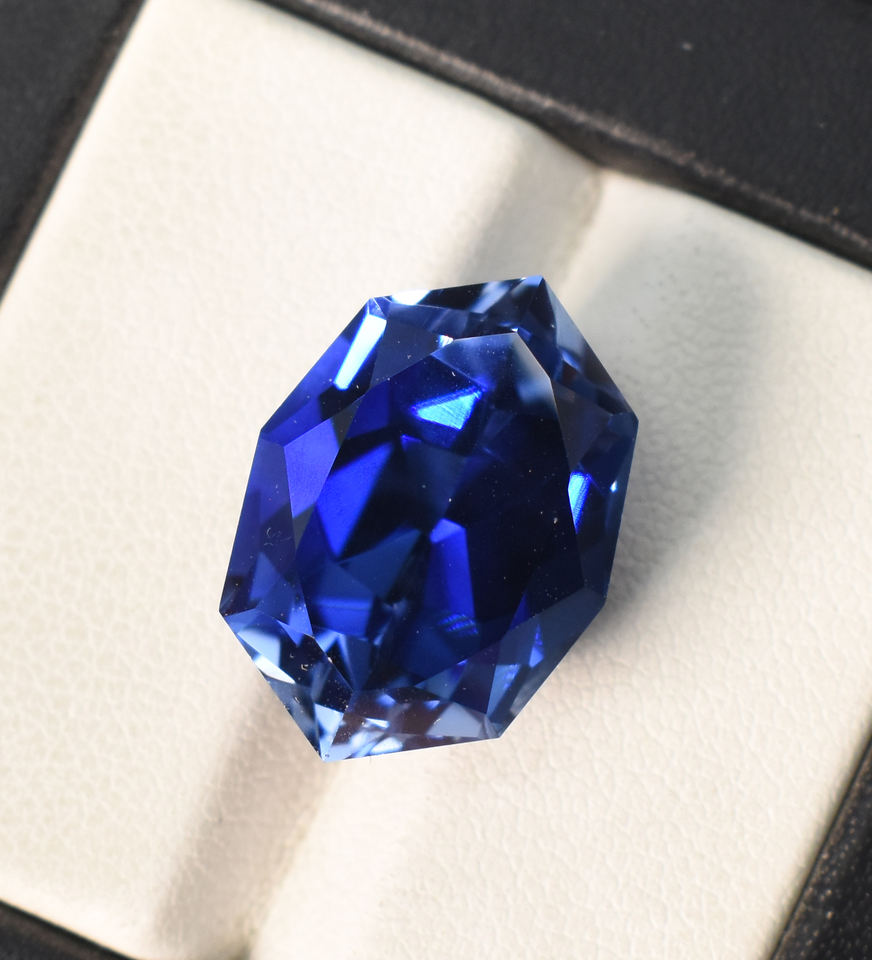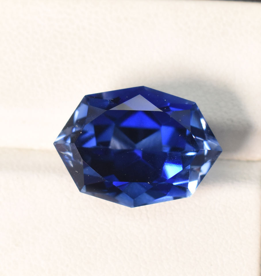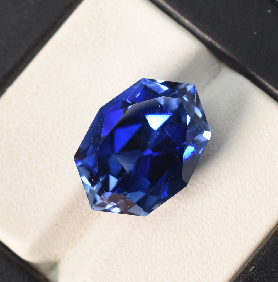 Saphir bleu royal de laboratoire, taille fantaisie hexagonale 18x13 mm, 18,80 carats, pierre précieuse non montée pour la création de bijoux