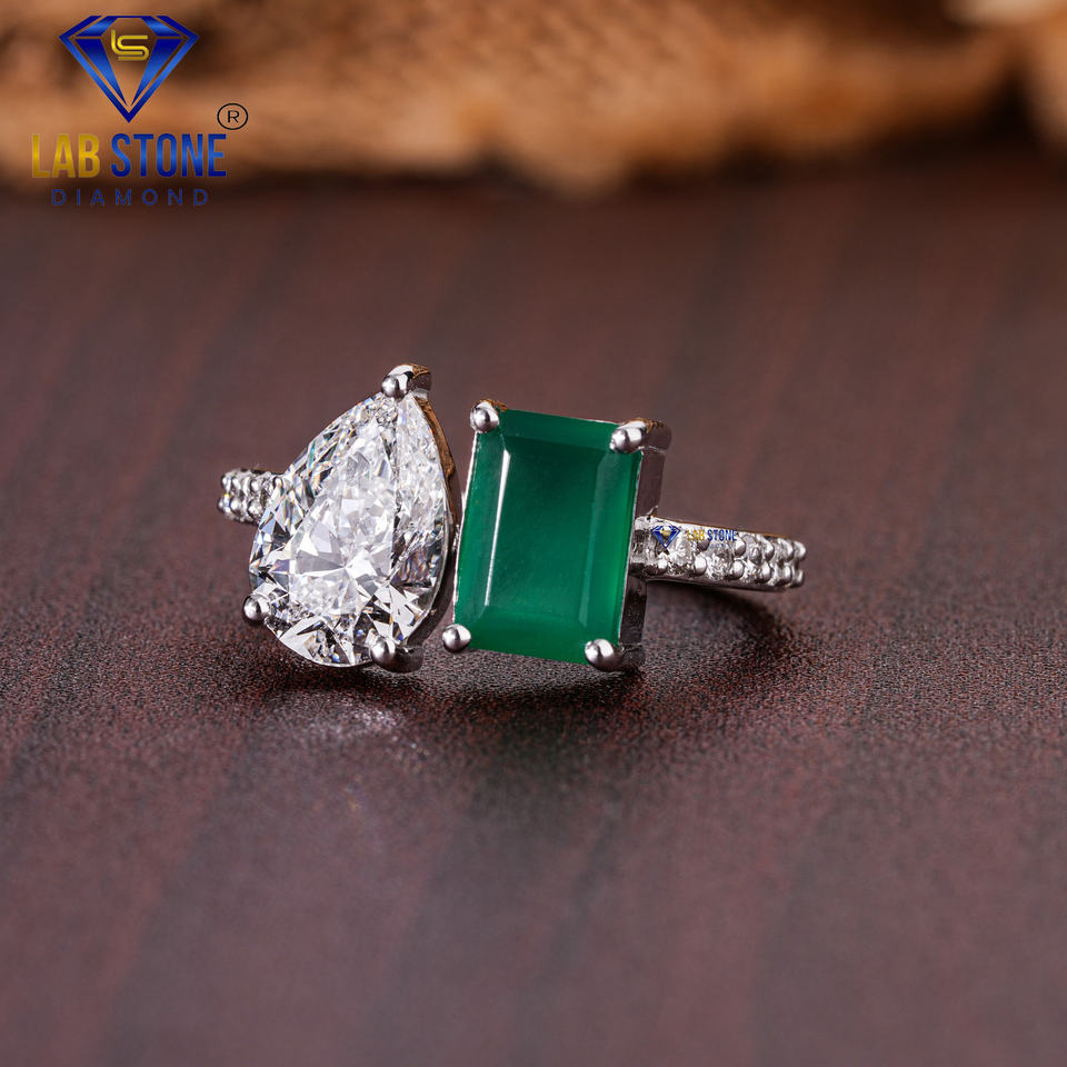 Lab-Stone 2.93 TDW Bague en or blanc avec diamant de taille émeraude et émeraude F.G Élégance classique Couleur EF-VS