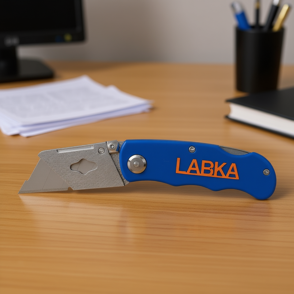 Couteau utilitaire Labka, manche en plastique bleu, lame en acier inoxydable, outil de coupe rétractable, usage de bureau