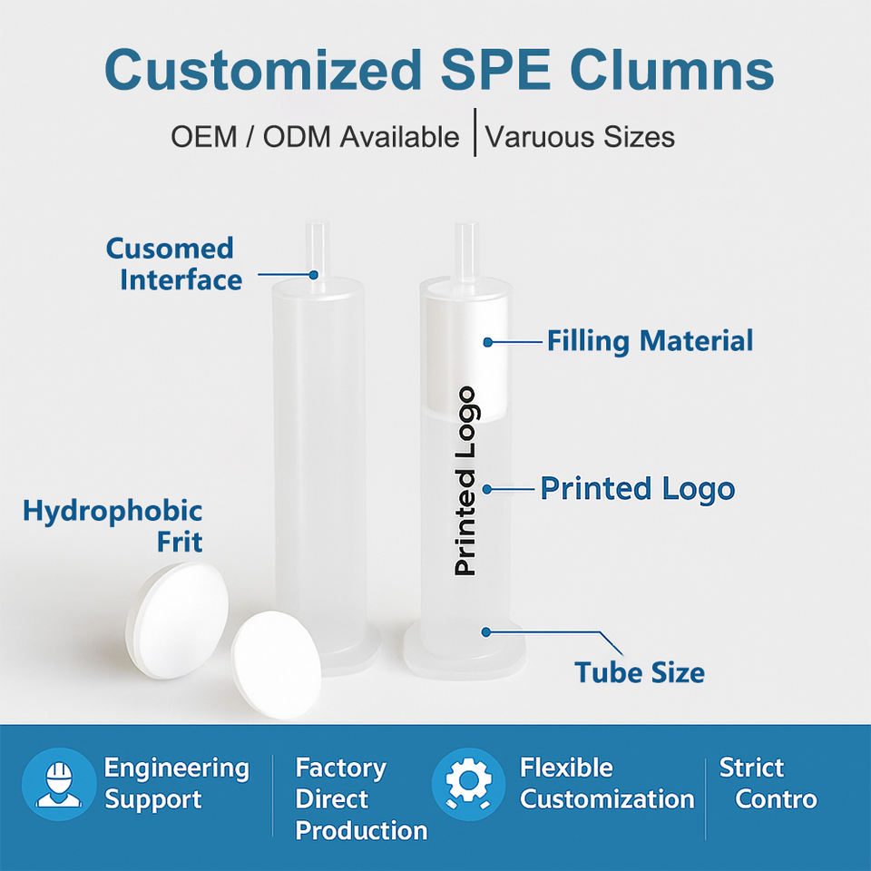 Consommable de laboratoire : Colonne SPE en PP pré-remplie à récupération élevée, Frits hydrophiles et hydrophobes, Résistant aux produits chimiques, OEM disponible