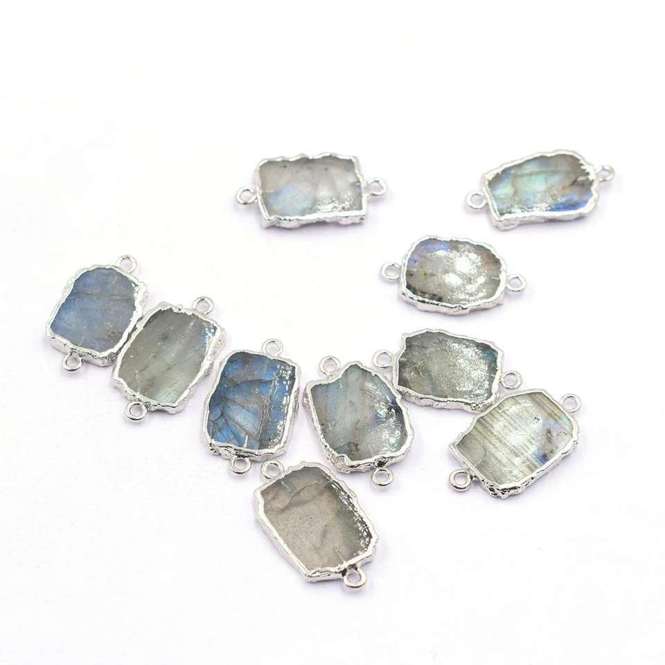 Stone Name:Labradorite Rectangle Shape Silver Plated Connector