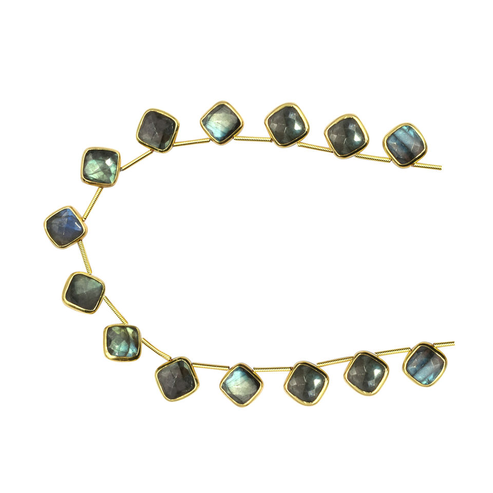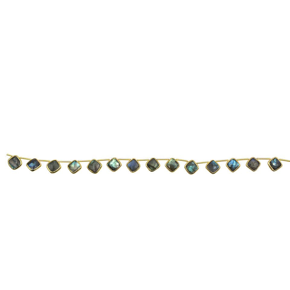 Nom du produit:Labradorite, lunette argentée, plaqué or, face supérieure percée, fil de 14 perles.