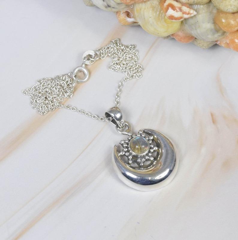 Labradorite-Pendentif en argent sterling 925 avec chaîne, forme ronde, bijou fait main, cadeau pour filles