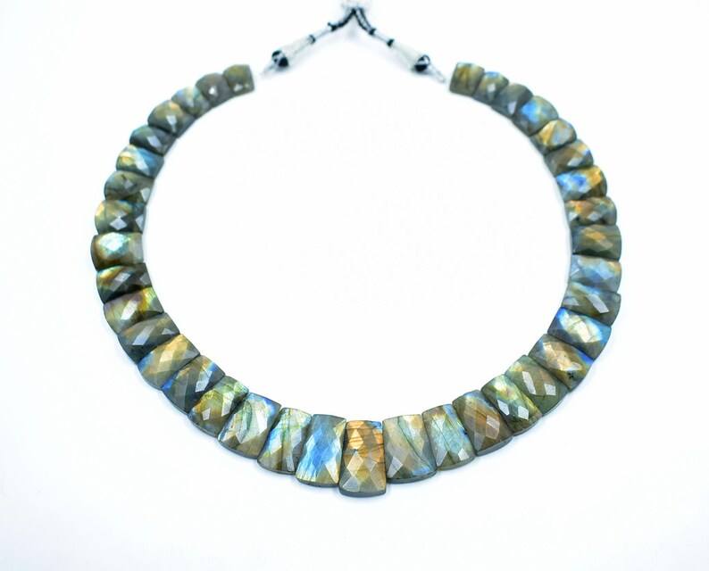 Collier ras du cou en perles de labradorite, breloque à facettes, style flashy, chaîne classique, accessoire de mode en gros