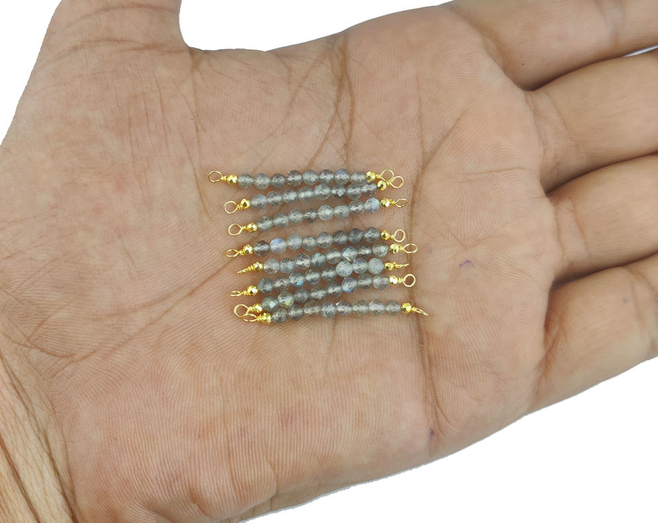 Barre de perles en laiton Labradorite Connecteur de pierres précieuses-2 boucles Fournitures de fabrication de bracelets pour enfants