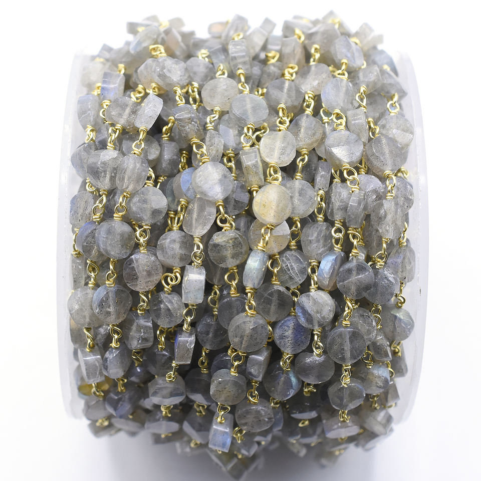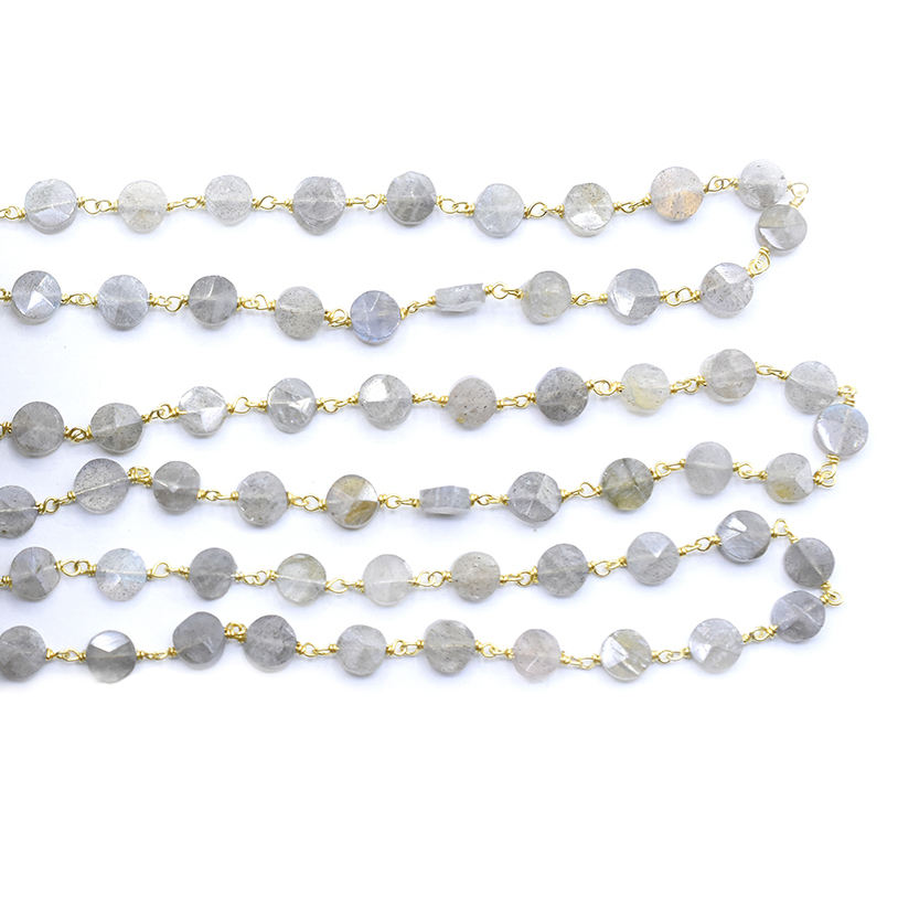 Product Name::Labradorite Gold Plated Sterling Silver Rosary Wire Wrap Chain