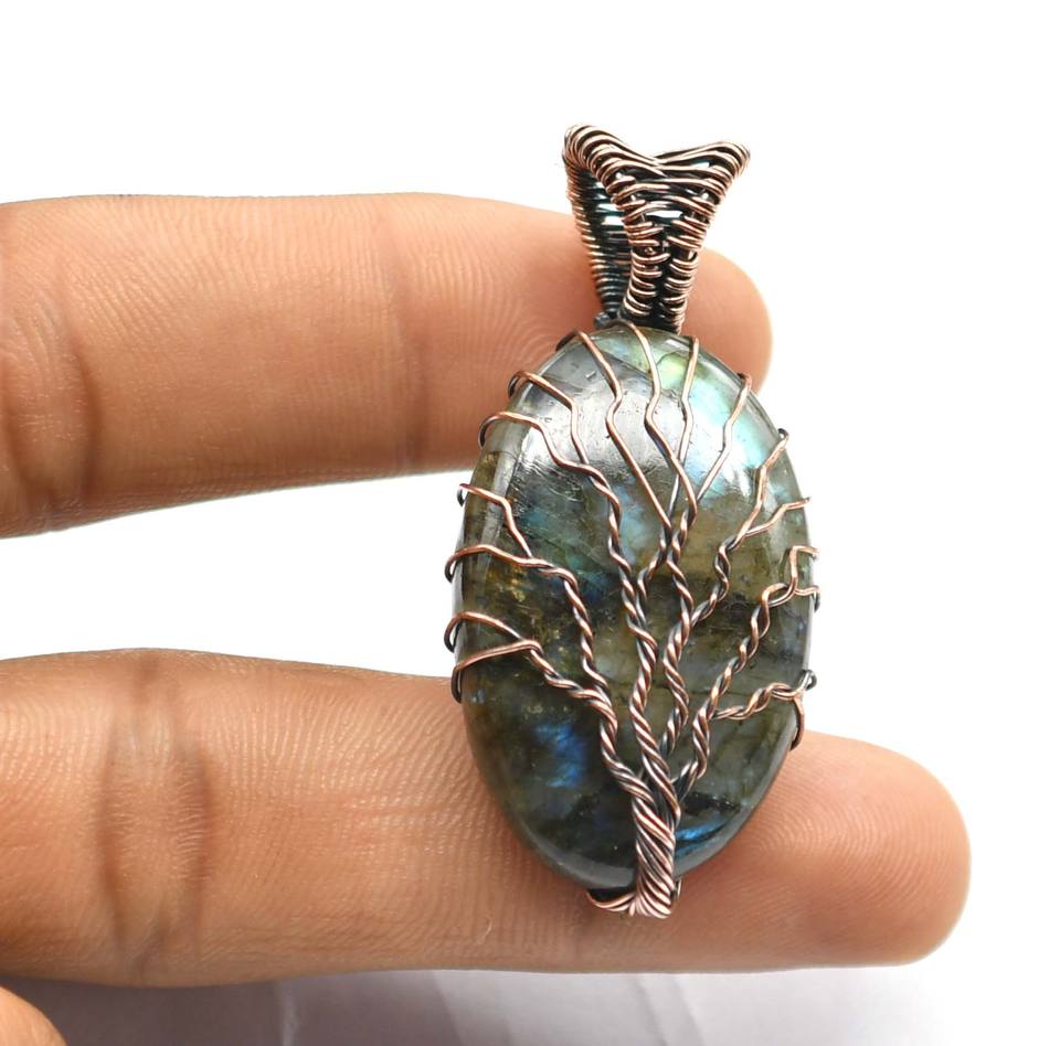 Pendentif en cuivre labradorite fait à la main fil de cuivre enroulé pierre précieuse laiton arbre de vie bijoux type religieux chrétien