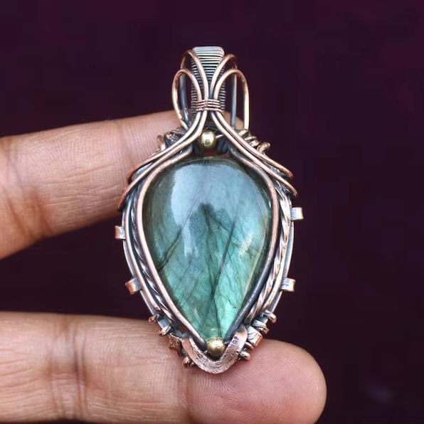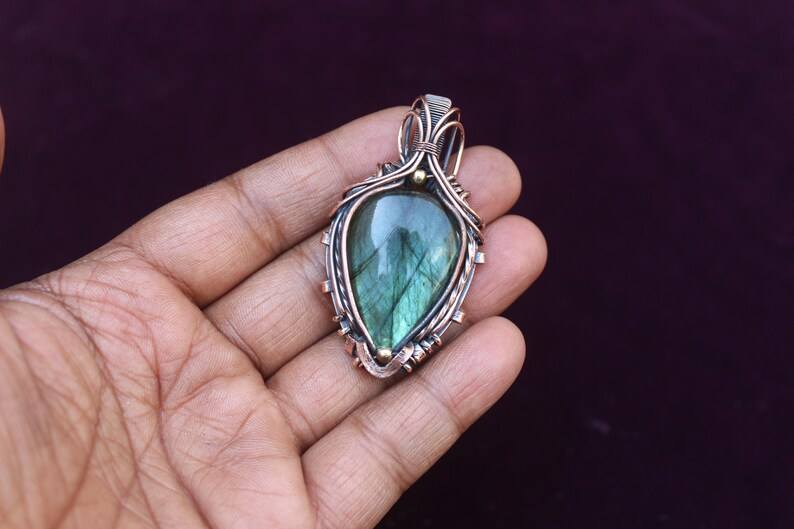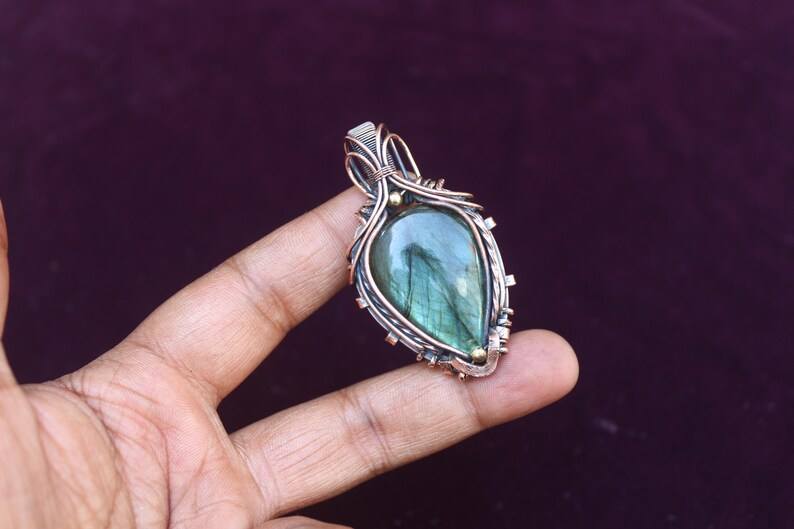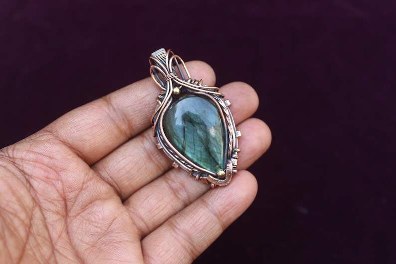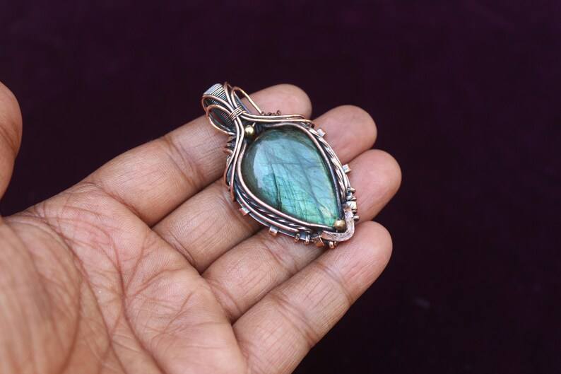 Labradorite Fil de Cuivre Wrap Pendentif Bijoux Unique Flashy Gemstone Design Oxydé Polonais Pendentif Idée Cadeau