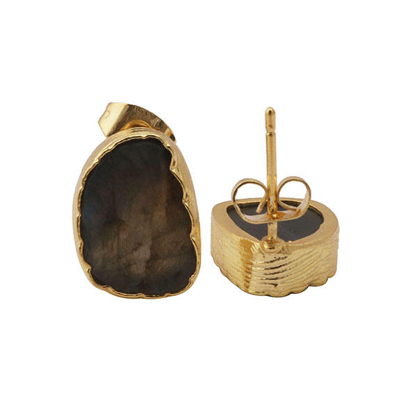 Boucles d'oreilles en laiton avec pierres précieuses Labradorite Plaqué or Trendy Birthstone Flower Setting Genuine Boho Stud Earring Customized Fashion
