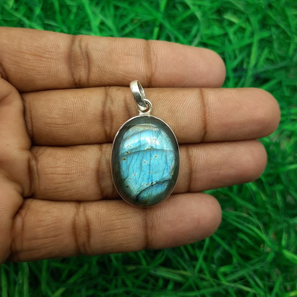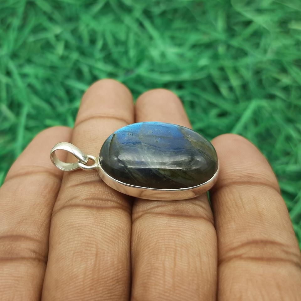 Labradorite Haute Qualité Unique Fait à la Main en Argent Sterling 925 Flash Labradorite Pendentif Forme Ovale Naturelle Cadeau Exquis pour Elle