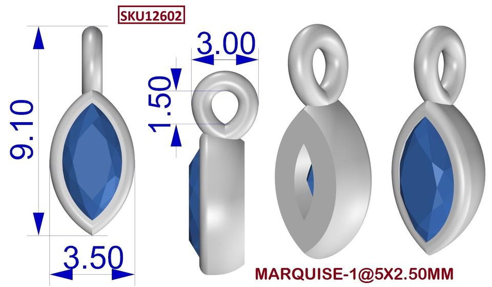Pendant Length:L- 9 MM With Bail, W- 3.5 MM, H- 3 MM