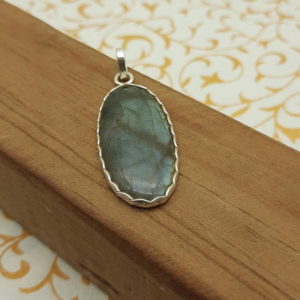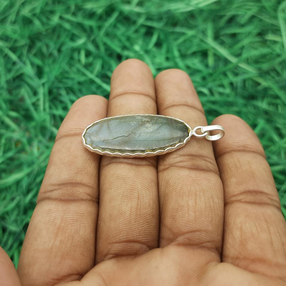 Pendentif en pierre naturelle de labradorite fait à la main en argent sterling 925 pendentif ovale au design simple cadeau pour elle bijoux fins