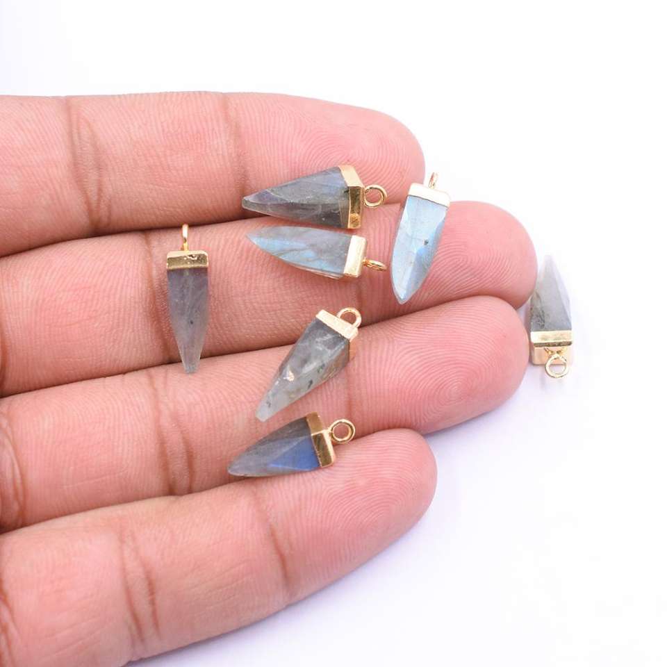Pendentif en labradorite en forme de cône 19-21 mm plaqué or avec bélière, pierre précieuse naturelle, accessoires de bijouterie, pierre de naissance d'août