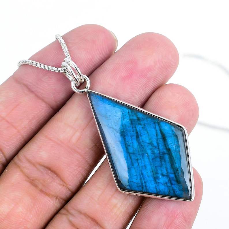 Collier pendentif en argent sterling 925 unisexe avec pierres précieuses Labradorite Blue Multi Fire Vintage Style for Daily Wear Special Gifting