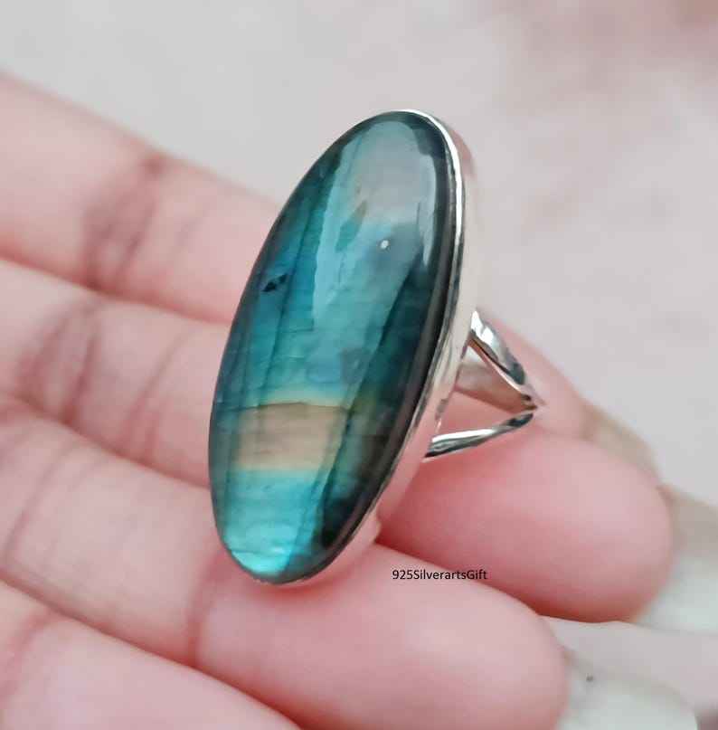 Bague Labradorite Bague en argent sterling faite à la main Boho Bague de déclaration Blue Flash Gemstone Unisex Couple Bague Bijoux en cristal naturel