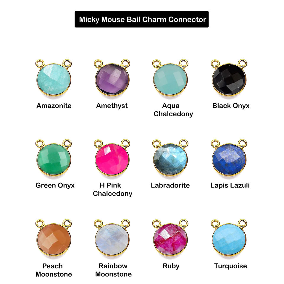 Pendentif Breloque Rond en Pierre de Labradorite – Argent 925 Style Mickey avec Anneau Fait Main Bijoux en Gros