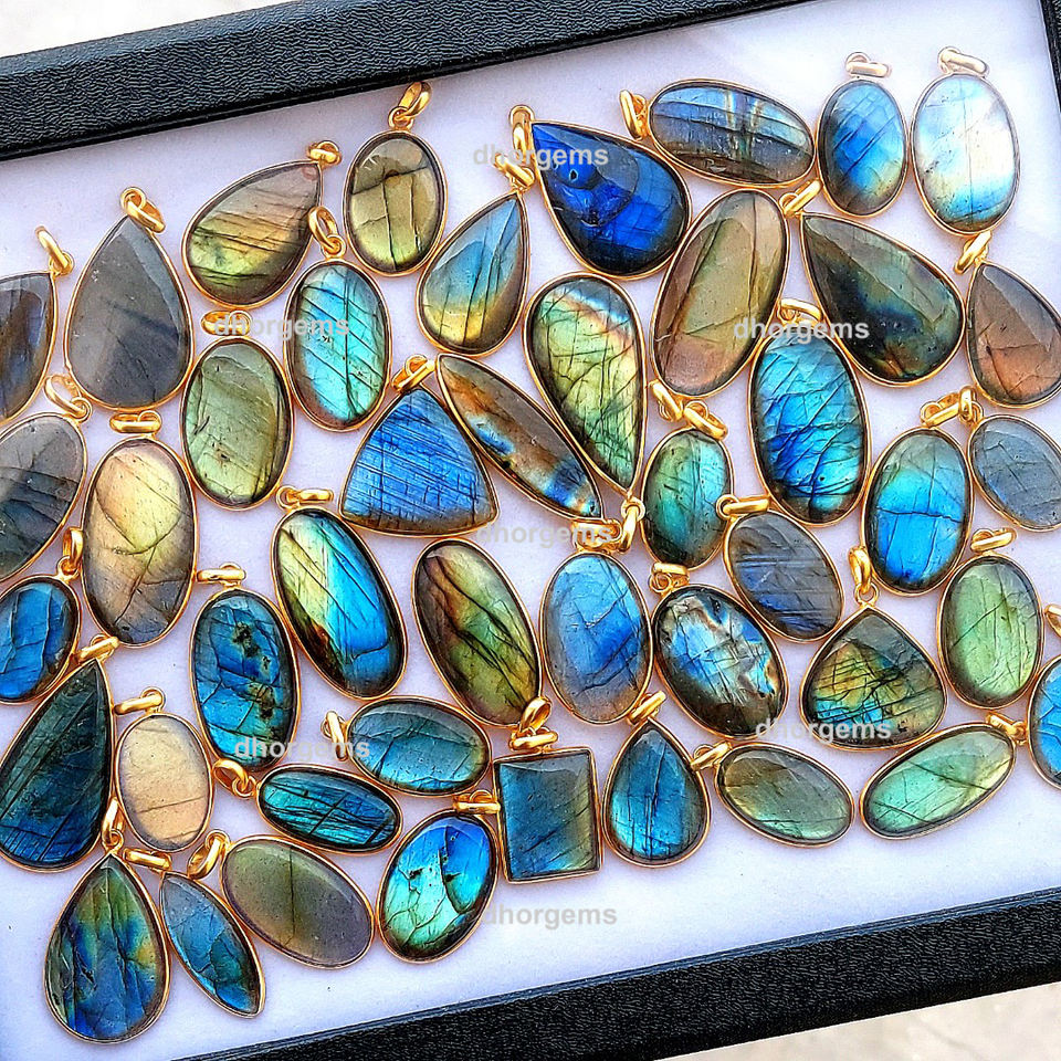 Pendentif en argent labradorite, plaqué or naturel, pierre précieuse à changement de couleur multi-étincelles, pierres brutes pour la fabrication de bijoux, 20-25mm, 4-6g