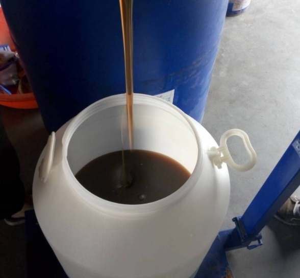 The viscous liguid with pale yellow and brown