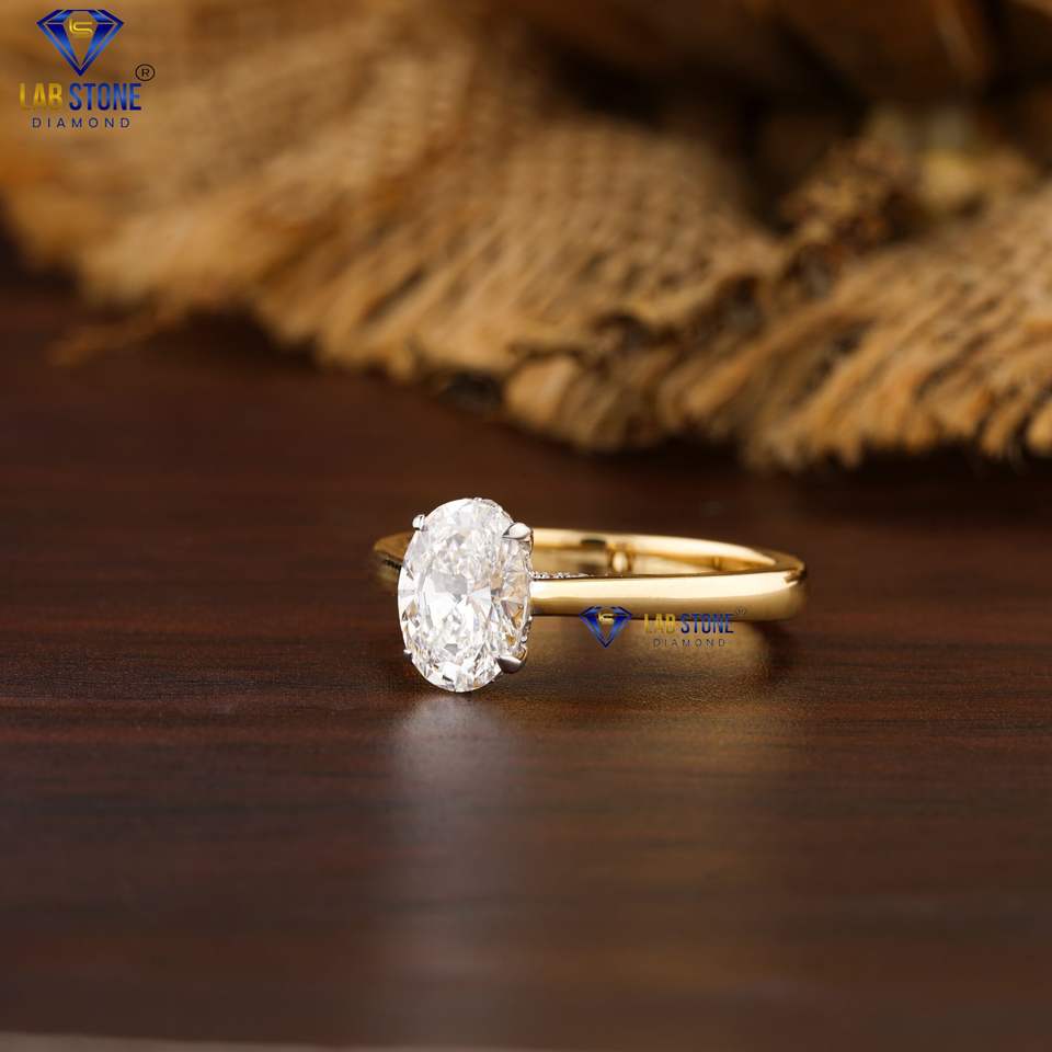 Labstone 2.41 TDW Oval & Round Yellow Gold Diamond Ring EF-VS Color 18K Gold GIA & IGI Certified for Engagement or Wedding