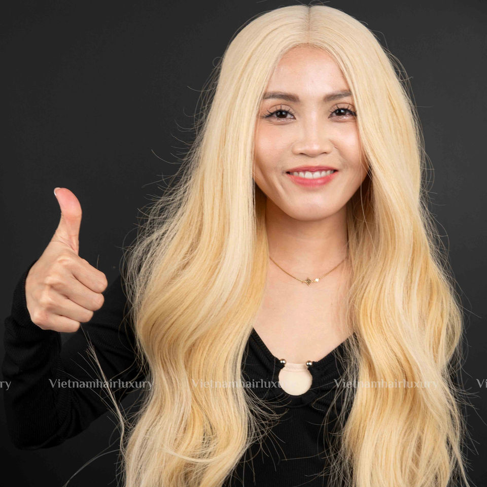 Perruque blonde dentelle frontale Cheveux vierges vietnamiens aspect naturel Prix d'usine