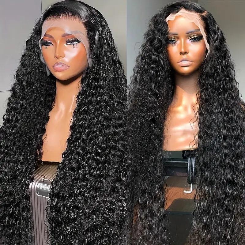 Perruque à dentelle frontale 13*4 pouces Dentelle transparente Fil synthétique haute température Style exotique Cheveux longs bouclés