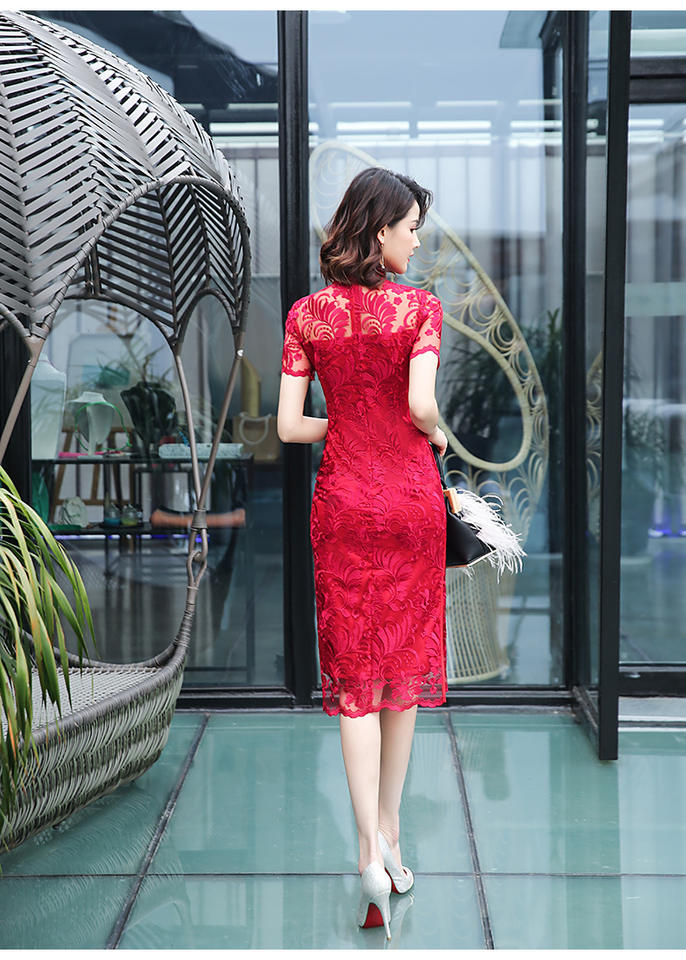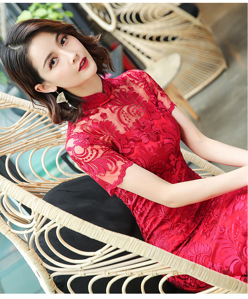 Qipao – robe de soirée mi-longue en dentelle Cheongsam améliorée, vêtements asiatiques minces pour femmes